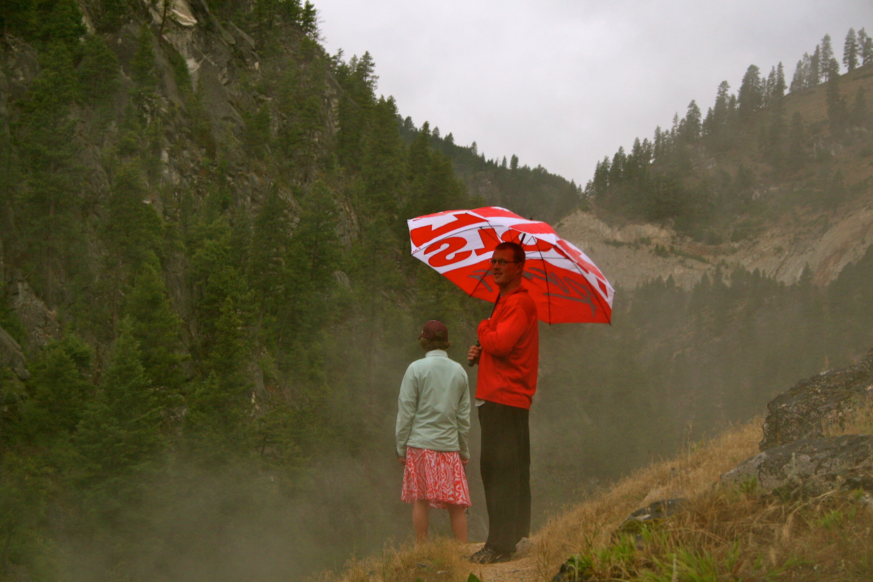 Headed to the hot springs in Idaho. It rained on us for 5 days while we were there. It really made me appreciate living in the desert and gave me a reason to finally use that umbrella we have been carrying around.