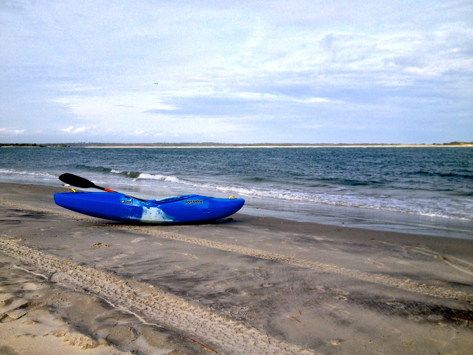 Finally after too many weeks being stuck in central PA, Amy and I are back on the road again. We are at Top Sail Beach in NC right now. Got in late last night. I took the Shiva out for a little ocean paddle this afternoon. Normally I’d take the Jed out for this kind of paddle but the surf wasn’t great and I wanted to cover more ground and I was curious to see what the Shiva would be like in the ocean. The surf was rough and gave it the feel of a big water run. Reading the ocean isn’t at all like reading the river though. The current seemed to be taking me every which way and I never knew what was coming next. Charging a 4 foot wave right before it breaks is just like hitting a little boof on the river. With a good stroke off the top you can fly off the back of the wave and drop into the next trough. Pretty fun but I’m still looking forward to getting back to the mountains and rivers in a few days.