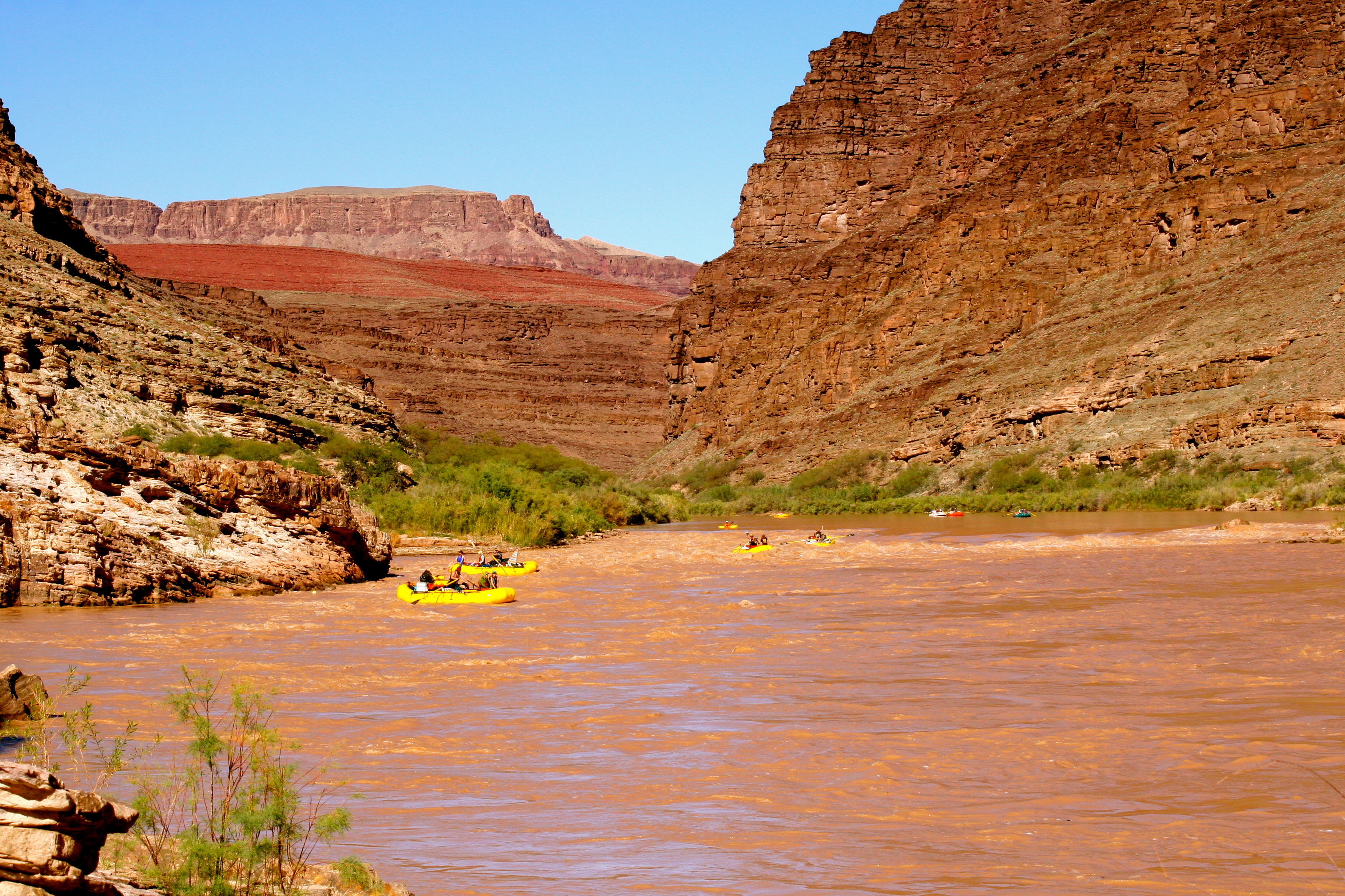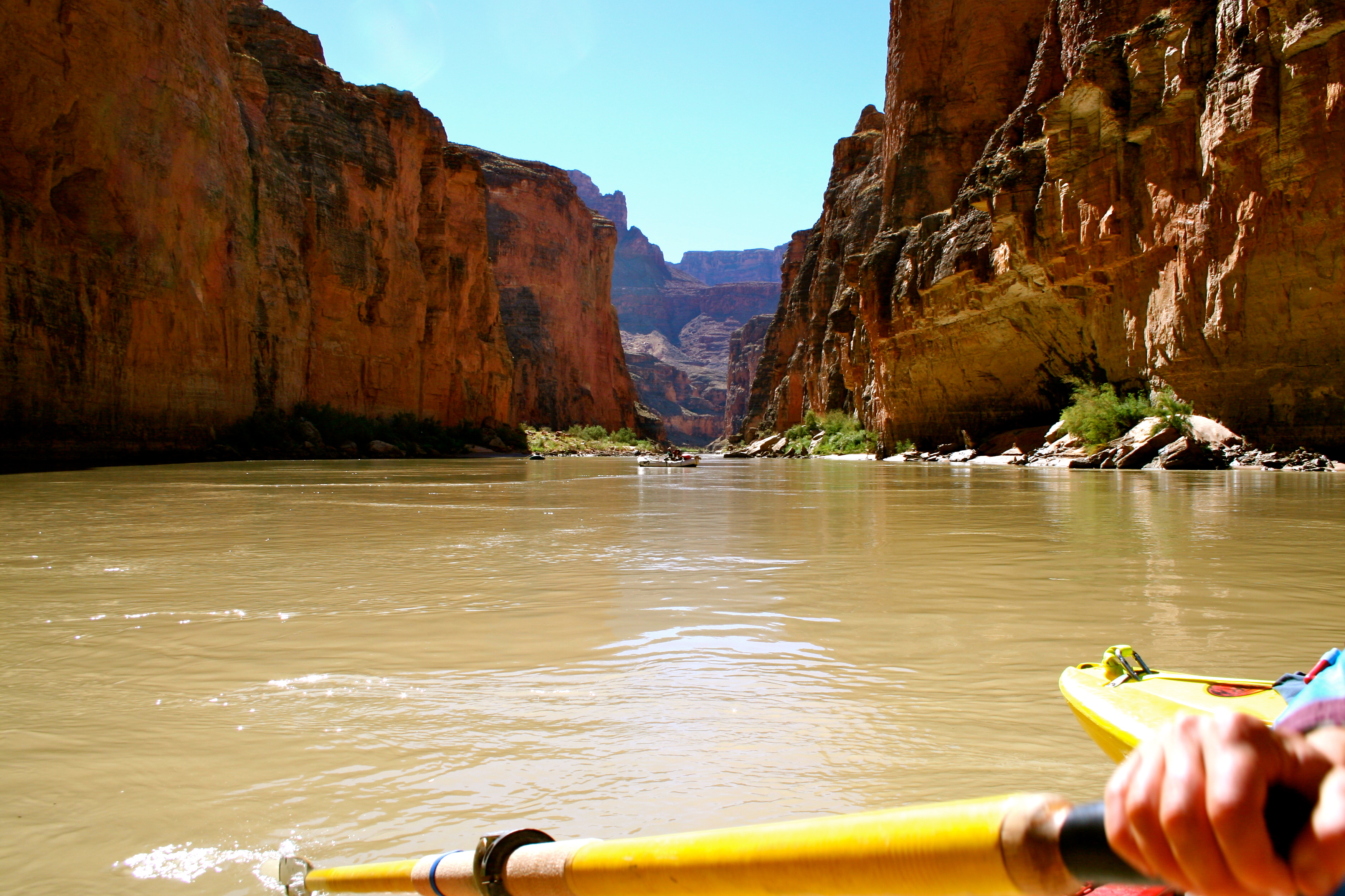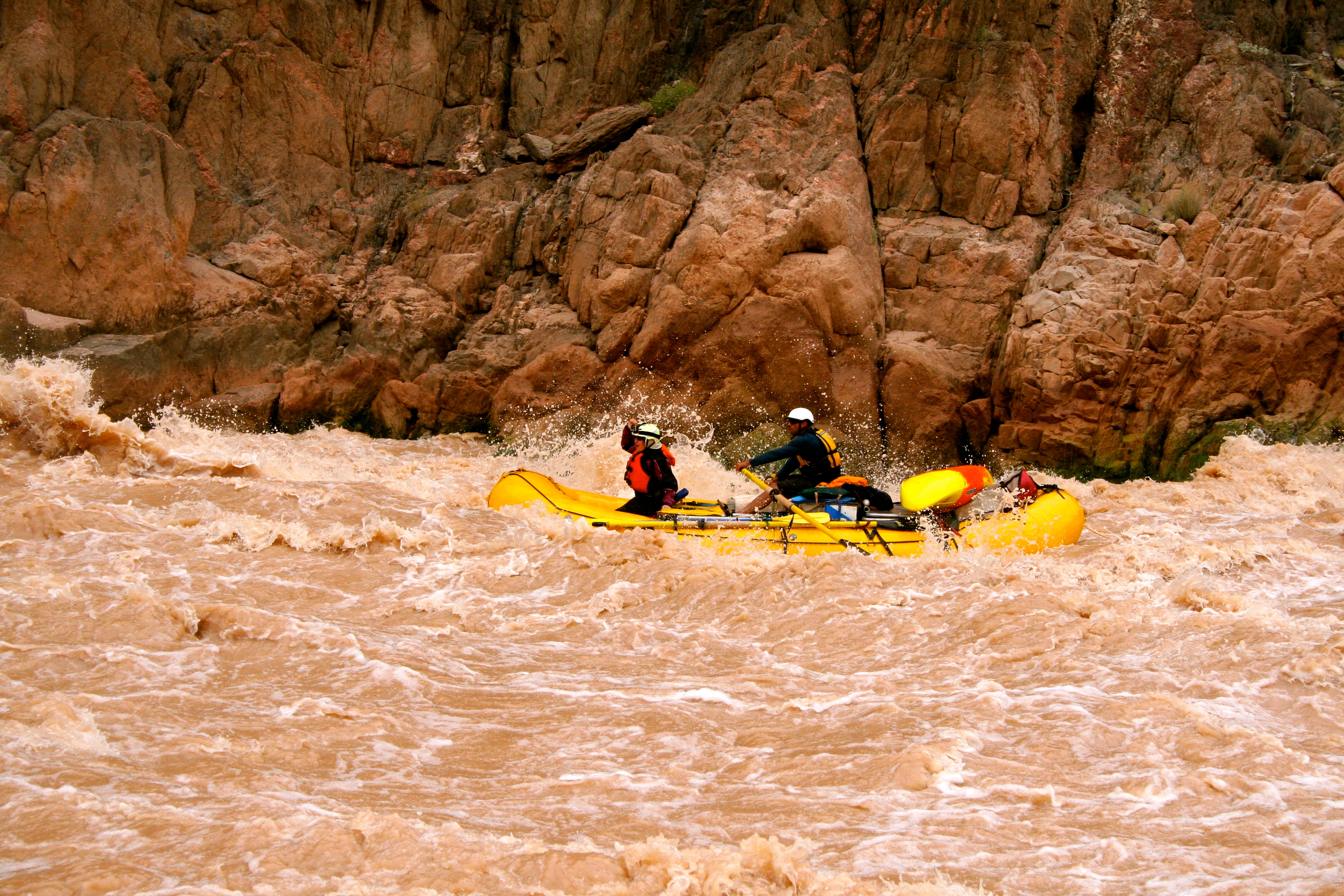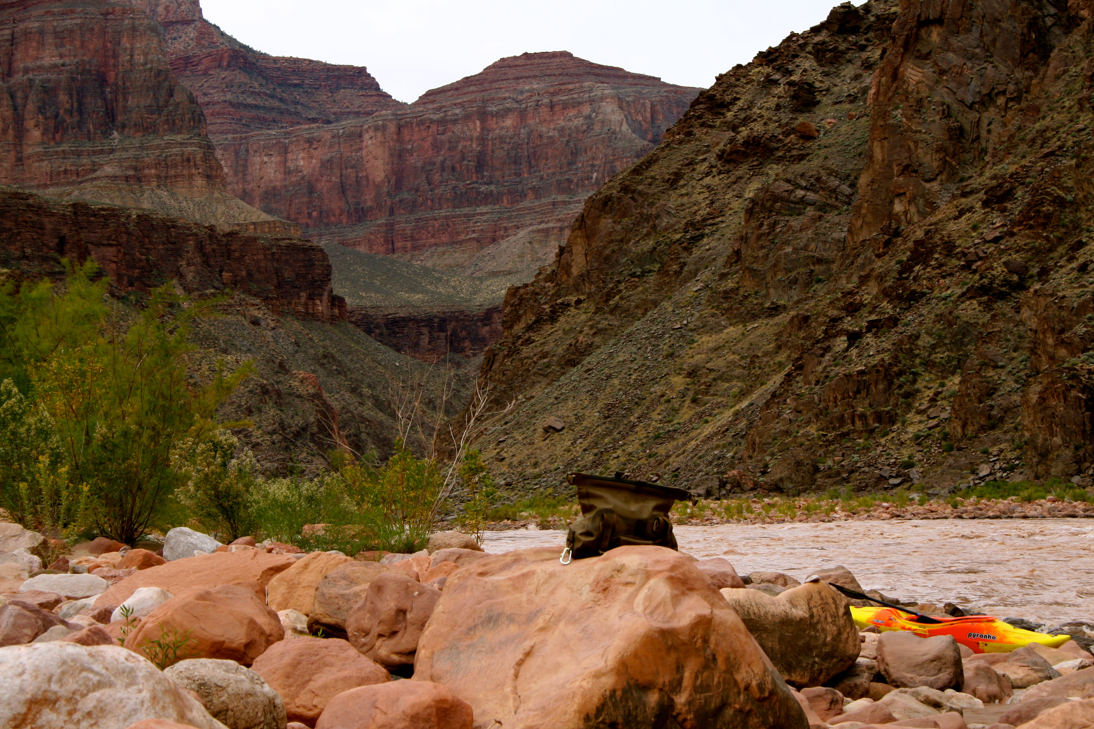 I have heard mixed things about the quality of play on the canyon and I’m sure you will hear contradictions to my assessment but for what it’s worth here are my thoughts on canyon play. There are some rapids where down river play is really good. Wave wheels and kick flips are huge and awesome. However, most of the rapids I found to be very surgey making it hard to predict the waves. The peaks of the waves could disappear on crash on top of you suddenly and unexpectedly. There were some waves that looked like great surf waves but you were coming in so fast it was really hard if not impossible to catch them on the fly and very few had eddy service. There were many times I would come over the top of a wave and see what looked like a good surf hole but it was 10 feet or more to one side or the other and getting to it once I had seen it was not an option. One hole that I did catch turned out to be really shallow. You can’t tell the depth with the muddy water and I ended up plastered to the top of a submerged boulder instead of plugging for a loop. Personally I don’t think it is worth taking a kayak if you have raft support. Just enjoy relaxing on the raft and if you want some real excitement try rowing one of those things through the big rapids. All that said I have friends who say they love playboating the canyon so I guess you’ll just have to find out for yourself.