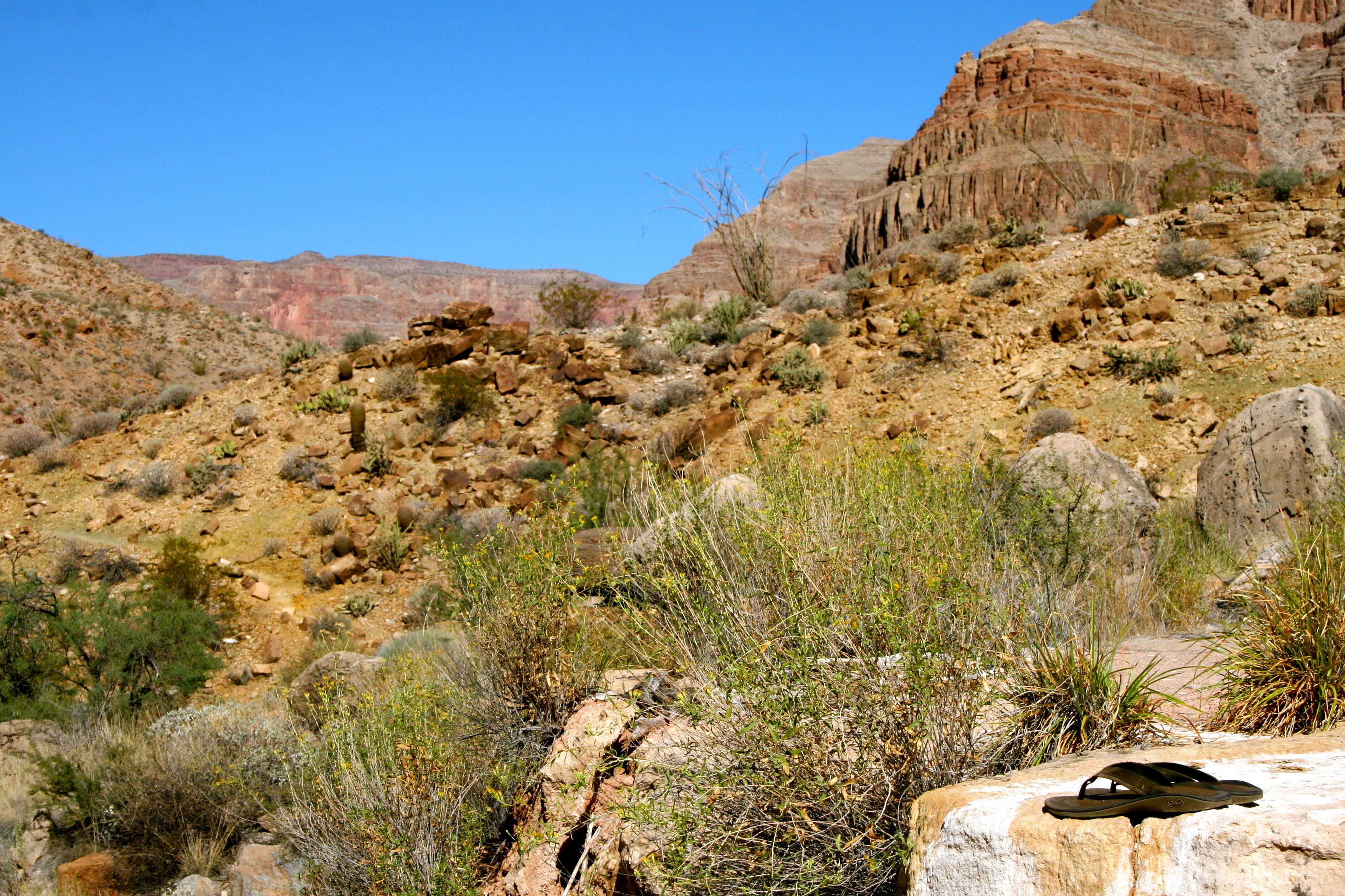 You’re not officially in the Grand Canyon until you pass the Little Colorado River. The LCR flows under a freeway not far upstream from where in comes into the canyon. It brings with it all kinds of debris which collects in the eddies just down stream. There is a good hike here and a great chance to build some good karma by picking up some trash.