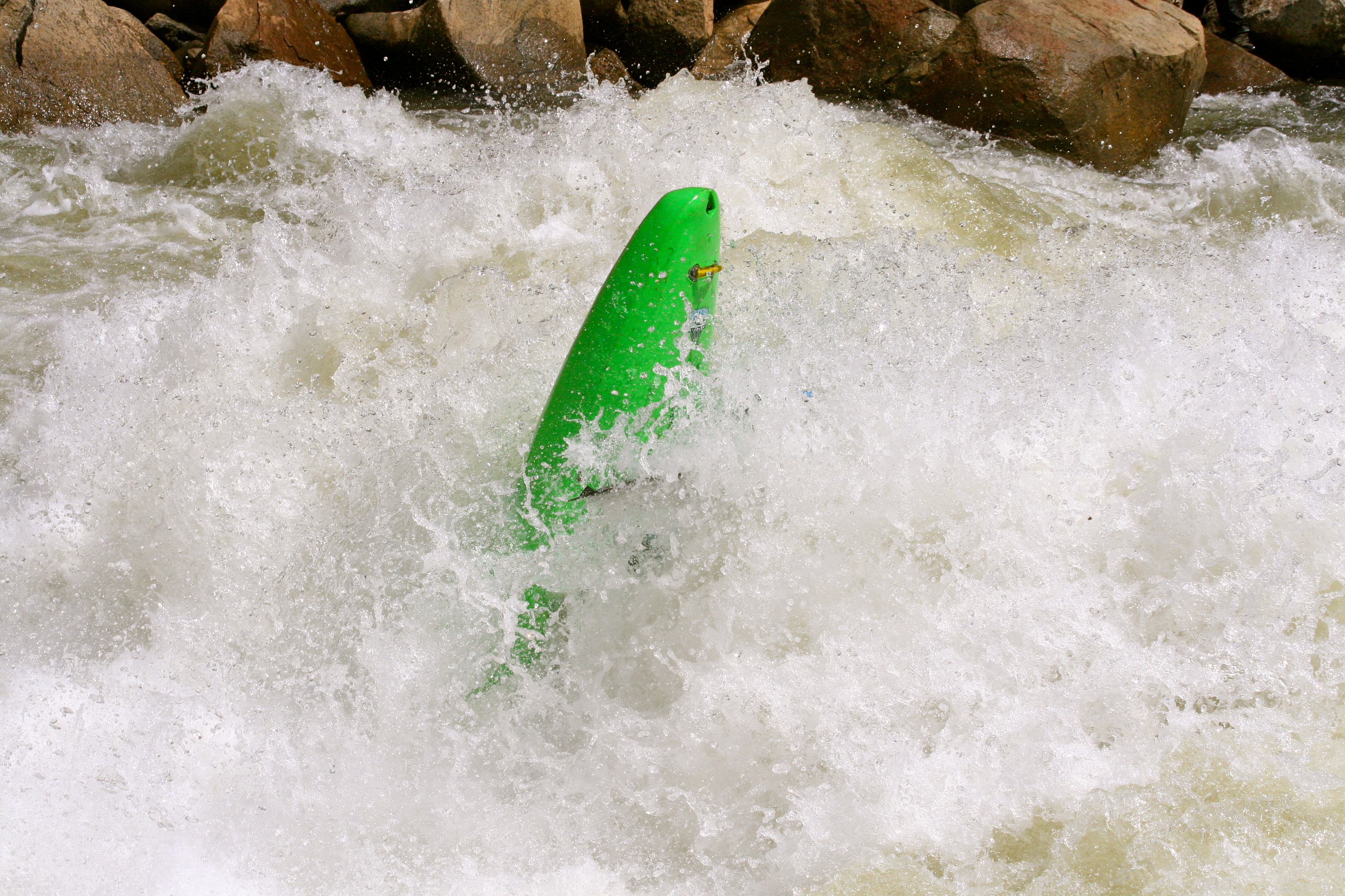 I have heard mixed things about the quality of play on the canyon and I’m sure you will hear contradictions to my assessment but for what it’s worth here are my thoughts on canyon play. There are some rapids where down river play is really good. Wave wheels and kick flips are huge and awesome. However, most of the rapids I found to be very surgey making it hard to predict the waves. The peaks of the waves could disappear on crash on top of you suddenly and unexpectedly. There were some waves that looked like great surf waves but you were coming in so fast it was really hard if not impossible to catch them on the fly and very few had eddy service. There were many times I would come over the top of a wave and see what looked like a good surf hole but it was 10 feet or more to one side or the other and getting to it once I had seen it was not an option. One hole that I did catch turned out to be really shallow. You can’t tell the depth with the muddy water and I ended up plastered to the top of a submerged boulder instead of plugging for a loop. Personally I don’t think it is worth taking a kayak if you have raft support. Just enjoy relaxing on the raft and if you want some real excitement try rowing one of those things through the big rapids. All that said I have friends who say they love playboating the canyon so I guess you’ll just have to find out for yourself.